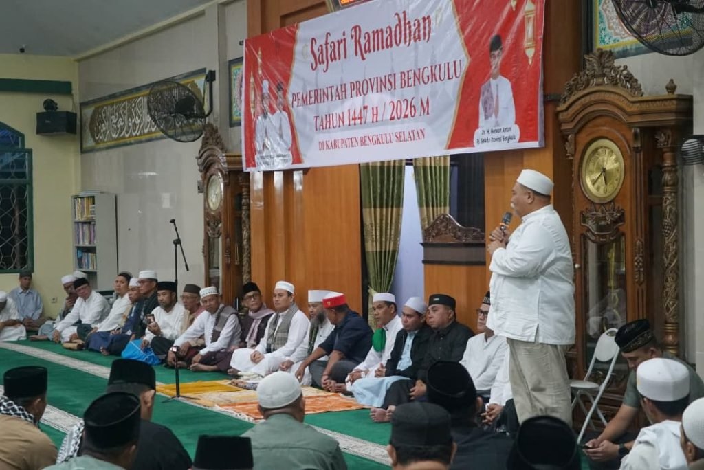 Suasana Subuh di Masjid Rukis, Kecamatan Pasar Manna, Kabupaten Bengkulu Selatan, Jumat (20/2), terasa berbeda. Gubernur Bengkulu, Helmi Hasan, hadir langsung melaksanakan Safari Ramadan dan salat Subuh berjamaah bersama masyarakat. Ia didampingi Sekretaris Daerah Provinsi Bengkulu dan jajaran kepala organisasi perangkat daerah (OPD), serta disambut Bupati Bengkulu Selatan, Rifa’i Tajudin, bersama Forum Koordinasi Pimpinan Daerah (Forkopimda) setempat.