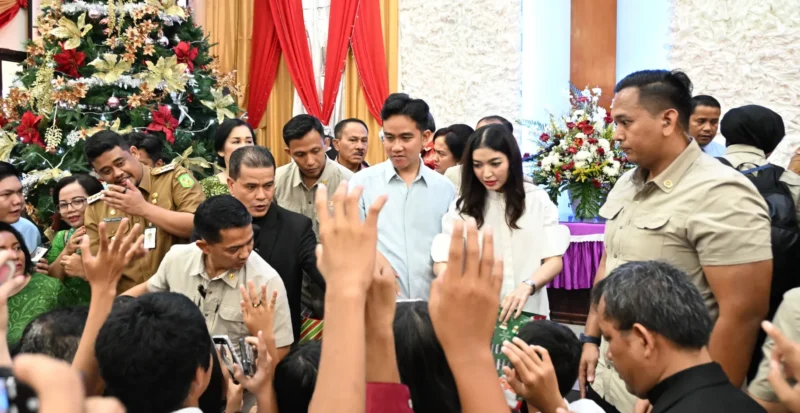 Wakil Presiden (Wapres) Gibran Rakabuming didampingi Ibu Selvi Gibran Rakabuming mengunjungi Gereja HKBP Sei Agul di Jl. Gereja No. 42, Sei Agul, Kecamatan Medan Barat, Kota Medan, Sumatera Utara, Senin (23/12/2024).