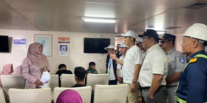 BANDA ACEH — Sekretaris Daerah (Sekda) Aceh, Muhammad Nasir, menyapa langsung para pemudik tujuan Kota Sabang di atas kapal motor penyeberangan KMP Aceh Hebat 2 di Pelabuhan Ulee Lheue, Rabu (18/3/2026), sesaat sebelum kapal bertolak.