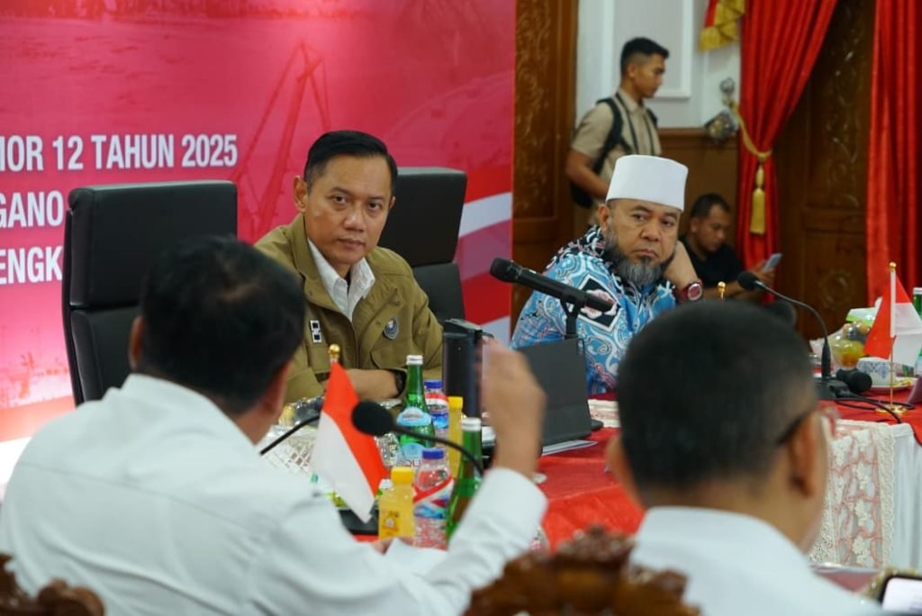 Usai meninjau alur Pelabuhan Pulau Baai Bengkulu, Menteri Koordinator Bidang Infrastruktur dan Pembangunan Kewilayahan RI, Agus Harimurti Yudhoyono (AHY), memimpin Rapat Evaluasi Pelaksanaan Instruksi Presiden (Inpres) Nomor 12 Tahun 2025 tentang Penanganan Pulau Enggano dan Normalisasi Alur Pulau Baai. Rapat tersebut digelar di Balai Raya Semarak Bengkulu, Selasa (16/9).