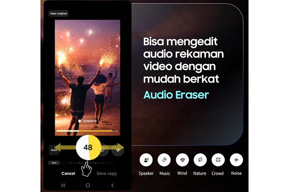 Bukan cuma untuk mendukung produktivitas, kamu juga bisa memanfaatkan Galaxy S25 Ultra dengan sensor kamera 50MP Ultrawide dan ProVisual Engine yang 4x lebih detail berkat 10-bit HDR dan Audio Eraser membantu kamu berkreasi dengan mudah setiap saat. Dengan fitur on-device AI Audio Eraser, kamu bisa langsung mengedit dan menghilangkan enam jenis suara yaitu suara manusia, musik, udara, alam, keramaian, hingga noise yang masuk ke dalam audio yang terekam di video. Jadi, cukup dengan bawa Galaxy S25 Series, kamu bisa vlog daily commuting tanpa perlu membawa mic tambahan.