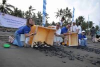 EVP Corporate Communication & Social Responsibility BCA Hera F. Haryn (ujung kiri), Pembina Banyuwangi Sea Turtle Foundation (BSTF) Wiyanto Haditanojo (kedua dari kiri), Kepala…