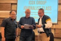 Kiri ke kanan: Corporate Secretary ICDX Anang Eko Wicaksono, Direktur Utama ICDX Fajar Wibhiyadi, Head of Corporate Communication ICDX P Giri Hatmoko. Foto: dok…
