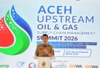 Sekda Aceh, M. Nasir, S.IP, MPA, saat menyampaikan sambutan Gubernur Aceh sekaligus membuka Aceh Upstream Oil dan Gas Supply Chain…