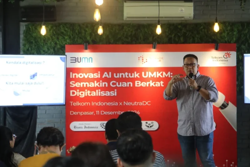 Acara yang berlangsung di Denpasar beberapa waktu lalu ini dihadiri oleh para pelaku UMKM dari berbagai daerah di Bali yang memproduksi dan memasarkan produk khas Pulau Dewata. UMKM Bali memiliki peran strategis sebagai pendorong ekonomi daerah dengan potensi produk yang mampu bersaing di pasar global. Melalui kolaborasi ini, Telkom dan NeutraDC membantu pelaku usaha kecil dan menengah memanfaatkan solusi digital berbasis Artificial Intelligence (AI) untuk meningkatkan efisiensi operasional, memperluas pasar, dan meningkatkan daya saing di era digital.