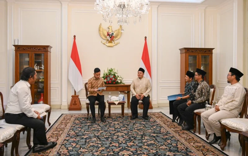 Wakil Presiden (Wapres) Gibran Rakabuming menerima silaturahmi keluarga besar Pondok Pesantren (Ponpes) Miftahul Huda II Bayasari, Ciamis, di Istana Wapres, Jakarta, Senin (27/04/2026). Pertemuan ini menjadi bagian dari komitmen pemerintahan Presiden Prabowo Subianto dalam memperkuat pembangunan sumber daya manusia unggul melalui peningkatan kualitas pendidikan, termasuk di lingkungan pesantren, serta pemanfaatan teknologi digital. Audiensi yang dipimpin