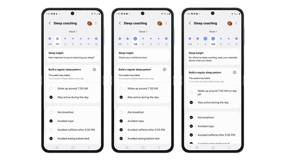 Fitur Sleep Coaching bisa memberikan rekomendasi personal yang dirancang untuk membantu kamu meningkatkan kualitas tidur. Fitur ini akan memberikan saran, seperti menghindari konsumsi kafein menjelang tidur atau menyesuaikan waktu istirahat dengan panduan praktis yang mudah diikuti. Dengan pendekatan ini, Galaxy Ring mendukung perubahan kebiasaan yang lebih sehat demi tidur yang lebih berkualitas.