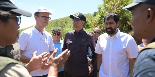 ACEH TENGAH— Gubernur Aceh Muzakir Manaf bersama Dubes Inggris untuk Indonesia Dominic Jeremy dan Anggota DPR RI T.A Khalid meninjau progres pelaksanaan program Inisiatif Konservasi Gajah Peusangan (Peusangan Elephant Conservation Initiative/PECI) di lahan PT Tusam Hutani Lestari (THL), di Kampung Karang Ampar, Kecamatan Ketol, Kabupaten Aceh Tengah, Kamis, (19/6/2025).