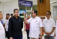 Banda Aceh — Penjabat Sekda Aceh Azwardi, memantau proses simulasi pelayanan tamu Pekan Olahraga Nasional (PON) XXI 2024, di Bandara Sultan…