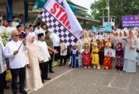 Shalawat Badar Menggema di Jantung Kota Banda Aceh BANDA ACEH— Penjabat Gubernur Aceh Bustami bersama istri Mellani Subarni melepas Musabaqah Pawai…