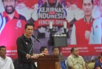 Sekda Aceh, M. Nasir, S.IP, MPA, saat memberikan sambutan dan membuka Kejuaraan Nasional Anggar Tahun 2025 dan Indonesia Fencing Open…