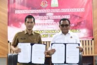 Sekda Aceh, M. Nasir, S.IP, MPA, bersama Kajati Aceh, Yudi Triadi, SH, MH, menandatangani nota kesepakatan antara Pemerintah Aceh dengan…