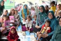 Bunda Literasi Aceh, Hj. Safriati, S.Si, M.Si, saat mengajak anak-anak untuk gemar membaca sejak dini, di Desa Lauke, Kecamatan Simeulue…