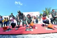 KUPANG – Kepala Staf Angkatan Darat Jenderal TNI Maruli Simanjuntak (tengah), Direktur Utama Pertamina Nicke Widyawati (kiri) dan Komisaris Utama Pertamina Simon Aloysius Mantiri…