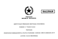 Presiden RI Joko Widodo (Jokowi) menerbitkan Keputusan Presiden Republik Indonesia (Keppres) Nomor 17 Tahun 2023 tentang Penetapan Berakhirnya Status Pandemi Corona Virus Disease 2019 (COVID-19)…