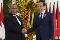 Presiden RI Joko Widodo (Jokowi) menerima kunjungan kerja Perdana Menteri Papua Nugini James Marape, di Istana Kepresidenan Bogor, Jawa Barat, Senin (15/07/2024) pagi. Dalam…