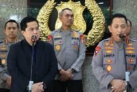 Kapolri Jenderal Listyo Sigit Prabowo menerima audiensi Ketua Umum PSSI Erick Thohir di Mabes Polri, Jakarta Selatan, Senin (15/7/2024). Dalam audiensi ini dibahas beberapa…