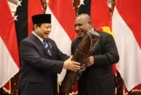 Menteri Pertahanan RI Prabowo Subianto menerima kunjungan Perdana Menteri Papua Nugini H.E. Mr. James Marape di Kementerian Pertahanan, Jakarta, Senin (15/7). Menhan Prabowo memberikan…