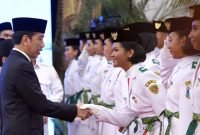 Presiden RI Joko Widodo (Jokowi) mengukuhkan sebanyak 76 putra-putri Indonesia dari 38 provinsi menjadi pasukan pengibar bendera pusaka (paMIibraka) yang akan bertugas pada HUT…