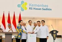 Presiden Joko Widodo meresmikan Gedung Pelayanan Kesehatan Ibu dan Anak di Rumah Sakit Hasan Sadikin (RSHS), Kota Bandung, Provinsi Jawa Barat, pada Kamis, 29…