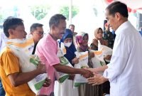 Presiden RI Joko Widodo (Jokowi) menyerahkan langsung bantuan pangan cadangan beras pemerintah bagi masyarakat penerima manfaat di Lapangan Sahate Purwakarta, Kabupaten Purwakarta, Provinsi Jawa…