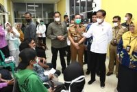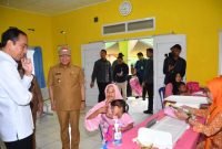 Presiden Joko Widodo bersama Ibu Iriana Joko Widodo meninjau kegiatan upaya penurunan stunting di PuMIesmas Srikuncoro, Kabupaten Bengkulu Tengah, Provinsi Bengkulu, pada Kamis, 20…