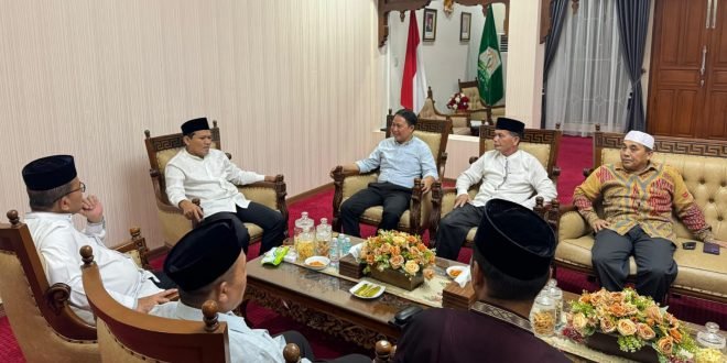 Banda Aceh – Wakil Gubernur Aceh, Fadhlullah SE, menyambut kunjungan audiensi Direktur Jenderal Penyelenggara Haji dan Umrah (Dirjen PHU) Kementerian Agama Republik Indonesia, Hilman Latief, beserta rombongan di Pendopo Wakil Gubernur Aceh, Banda Aceh, Rabu (5/3/2025). Pertemuan ini turut dihadiri oleh Kepala Kantor Wilayah Kementerian Agama (Kanwil Kemenag) Aceh, menandai pentingnya kolaborasi antara pemerintah daerah dan pusat dalam meningkatkan pelayanan haji dan umrah bagi masyarakat Aceh.