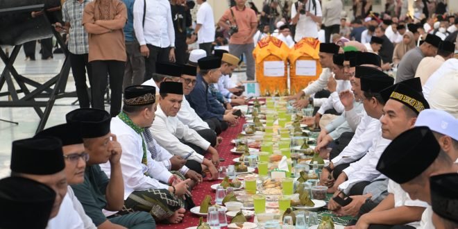 Banda Aceh – Wakil Gubernur Aceh, H. Fadhlullah, SE, bersama Plt Sekda, para Asisten, Kepala SKPA, dan Kepala Biro Setda Aceh, mengikuti buka puasa bersama di halaman Masjid Raya Baiturrahman, Minggu, 16 Maret 2025. Acara ini dihadiri juga oleh para Bupati dan Wali Kota se-Aceh, serta lebih dari seribu pegawai pemerintah Aceh.