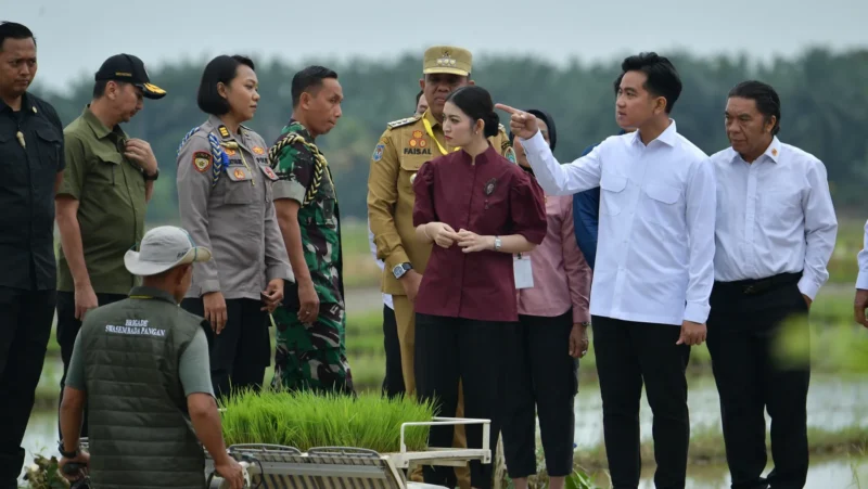 Sejalan dengan misi Asta Cita Presiden Prabowo Subianto untuk mewujudkan swasembada pangan di tanah air, Wakil Presiden (Wapres) Gibran Rakabuming didampingi Ibu Selvi Gibran Rakabuming pagi ini, Selasa (24/12/2024), meninjau langsung penggunaan mesin penanam padi (rice transplanter) di persawahan Desa Aman Damai, Kecamatan Sirapit, Kabupaten Langkat, Provinsi Sumatera Utara.